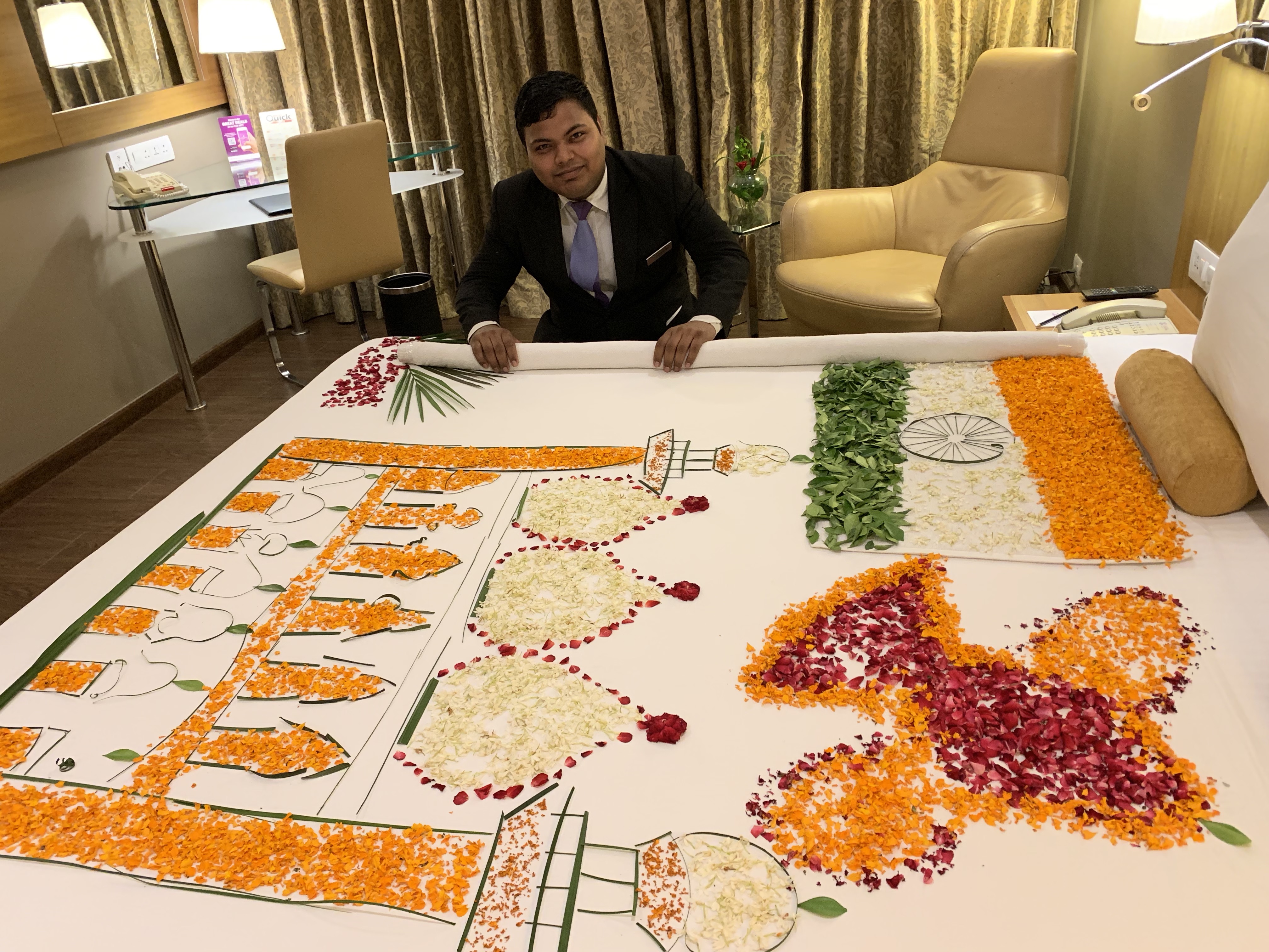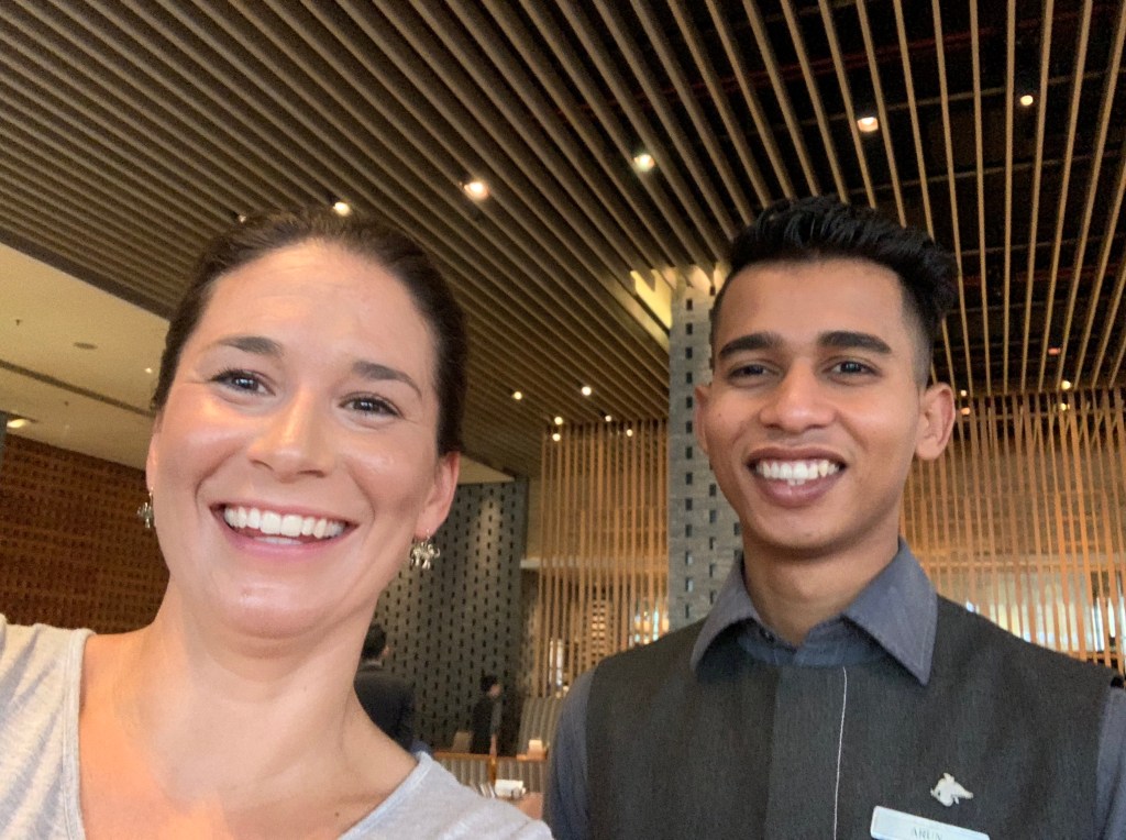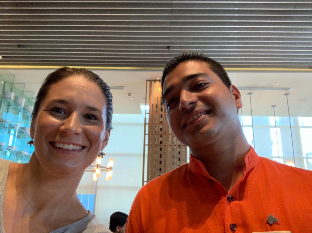 I left Pune yesterday, 8/23. I had a quick breakfast and headed out but not before getting showered with lots of sweet goodbyes and kindness from the staff at the JW Marriot. I connected with 2 of the young men (Arun and Federick) who were working in the restaurant that I frequented daily. We shared a few selfies and Arun gifted me a beautiful package that he asked me to open later. I grabbed and Uber and headed to the airport (an Uber here to go 15 km to the airport is approximately 5 dollars!-bargain, right?! Things are so much cheaper here than in the U.S!). In the Uber, I opened the package and found a beautifully wrapped blue package with a Ganesha statue inside. Ganesha is a religious deity who is worshipped in India and is known as the “remover of obstacles”. I was brought to tears, overwhelmed with the feeling of gratitude and deep appreciation for this journey and the sweet gesture by my new friend.
