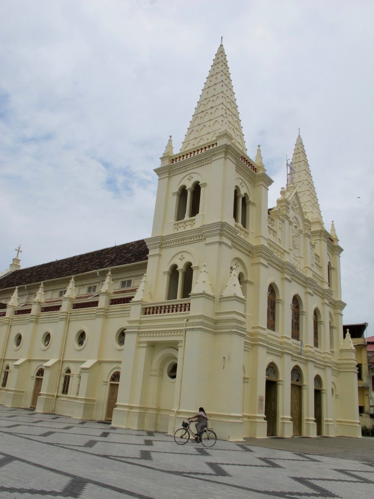 Fort Kochi is a town that survives off tourism and therefore, there are many shoppes and restaurants around every corner. I wanted to do a tour when I arrived so I googled a few tour companies and settled on one that I found through a famous blogger “Hippie in Heels”-(https://hippie-inheels.com-who died in May this year after a heart attack at her Bachelorette party-horrifying! Her blog is amazing for anyone thinking of solo traveling! Check her out and help her memory live on…) called GoMowgli. I called the office which was located in a nearby hostel, “Happy Camper” and no one answered. I wasn’t quite sure whether or not the tour company was still operating since their website was functional but there was no active way to pay for the tour that I was attempting to book. I looked through TripAdvisor and didn’t find any recent entries so I was pretty sure they may have closed down. However, before I had much time to think about where to turn next, I received a call on my phone (on my India number) and wondered who it could possibly be. Usually I ignore such calls but was strangely curious. Sure enough, it was someone from the hostel I had called, who knew about GoMowgli, because he used to work there! He told me they were no longer in business but to come on by and he’d be happy to help. So, I headed over-just really short walk from my hotel and met Girish. He is a really nice guy, about my age, who was interested in meeting new people and clearly loves this place. He offered to take me on a bike tour through the town of Kochi the next day and I was psyched. The tour was great! The company, “Raw Adventures” (website is TBD-http://rawadventure.in/about-us/), is an up and coming tour company there-if you go to Fort Kochi, you have to check them out. We became fast friends and he showed me around the area-the best spot for coffee and cake (https://www.tripadvisor.com/Restaurant_Review-g297633-d12938457-Reviews-Alice_Delices_French_Bakery-Kochi_Cochin_Ernakulam_District_Kerala.html), best chai spot (no link for this one-it was street cart!). Gotta love someone else that loves to share their good eats spots!