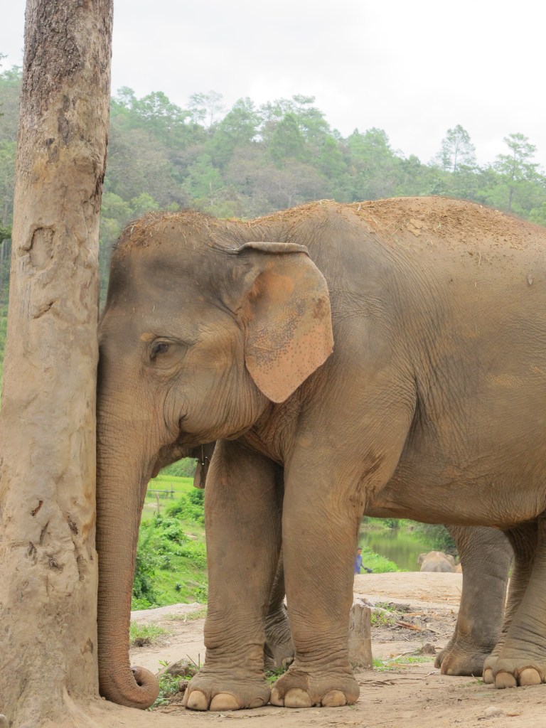 We had the chance to take lots of pictures and to witness and watch their majestic ways. Afterwards, we were able to interact with the 2 other elephant families. They keep them separated due to risk of fighting between families, especially the male elephants. There is only one male in each family, for this reason. We had a brief lunch and then spent some time relaxing, watching the gentle giants. One of the elephants was grazing over the fence and just decided he wanted to go further, so he stepped right over the fence, knocking the fence post over and continuing on his way, closer to us. Photo op-yes! The guys that worked at the sanctuary went over and shooed him back into the penned in area and fixed the fence. It’s so funny to know that these animals really are the ones in control-they could take you over in a second. But, because they have been rescued and somewhat trained by the workers at the sanctuary, they are pretty amenable to the cues.